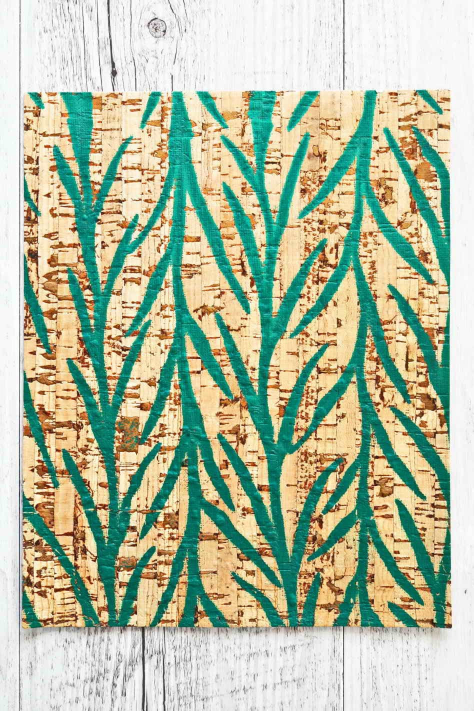 Natural cork sheets, green leaves print.