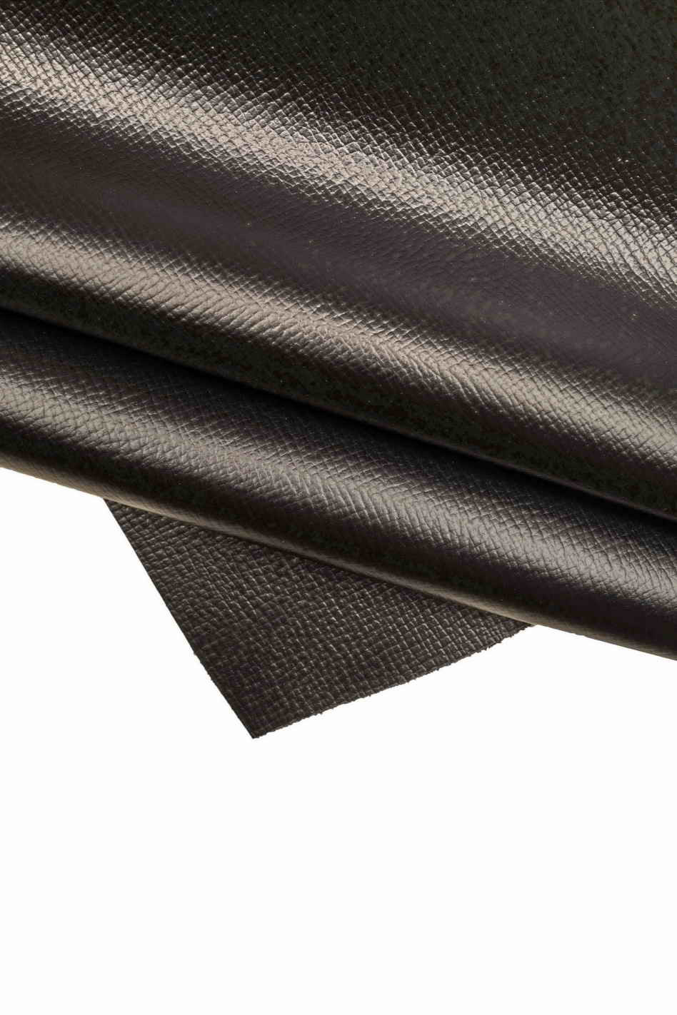 Black PEBBLE grain printed cowhide, saffiano-like embossed leather hide, glossy calfskin, 1.5-1.7 mm