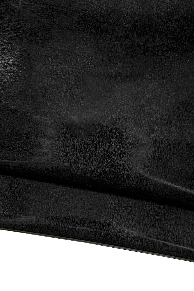 Black GLOSSY leather hide, elegant smooth goatskin, small size kid skin 0.5 - 0.7 mm for crafters and hobbyists