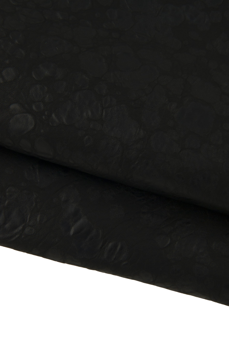 Stunning black washed lamb nappa leather with irregular grain print, soft.