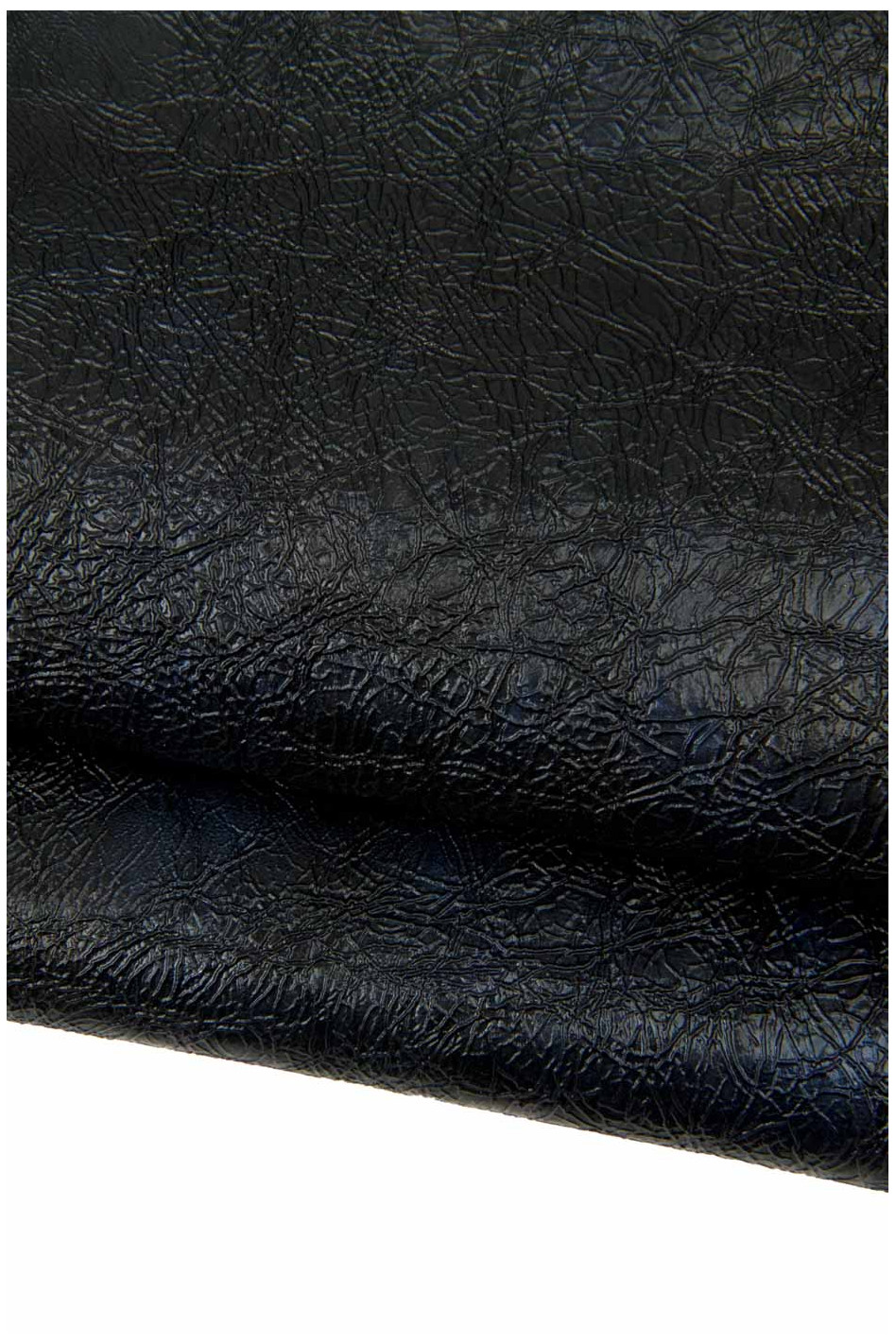 Black WRINKLED leather skin - with blue shades - GLOSSY naplack patent goatskin, soft hide for hobbyists