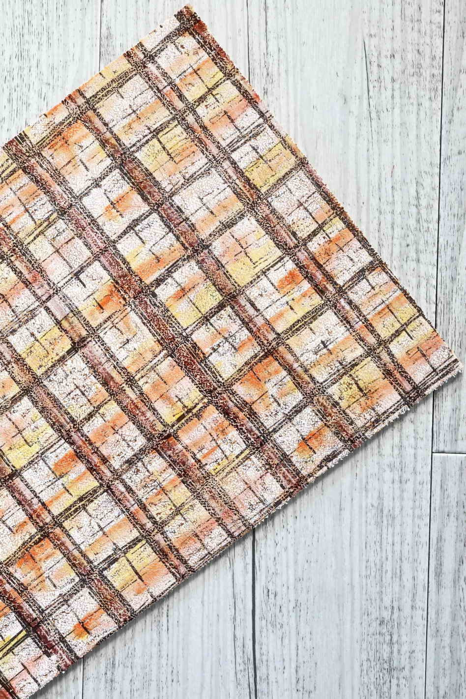 CORK on LEATHER sheets backed natural cork,made in Italy, squares in pastel tones print, vegetable calf on the back 8x10"/12x12"