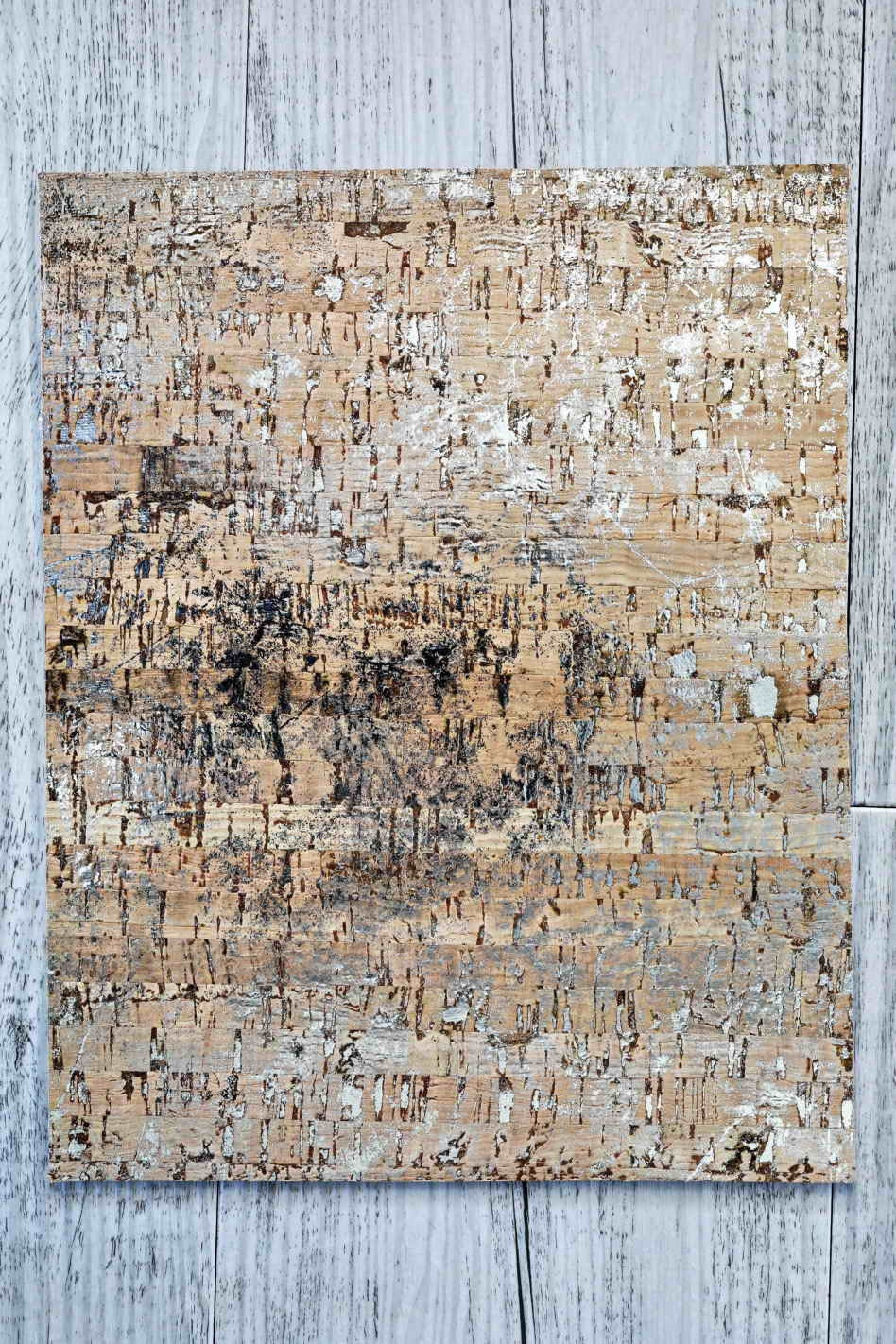Real leather cowhide sheets backed natural cork, abstract silver print and cream calf hide on the back