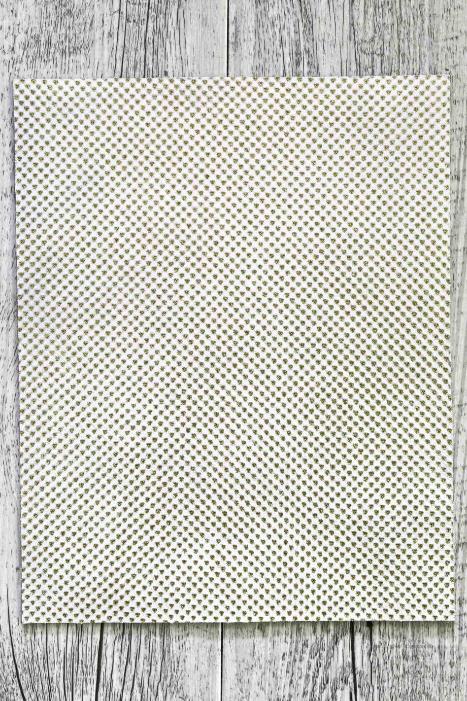 Leather pieces backed cork, made in Italy, abstract textured, light gold glitter, calfskin white gold tiny triangles on the back