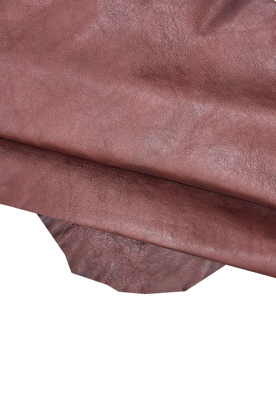 BURGUNDY glossy leather skin, wrinkled goatskin, sporty soft hide, 0.8 - 1.0 mm