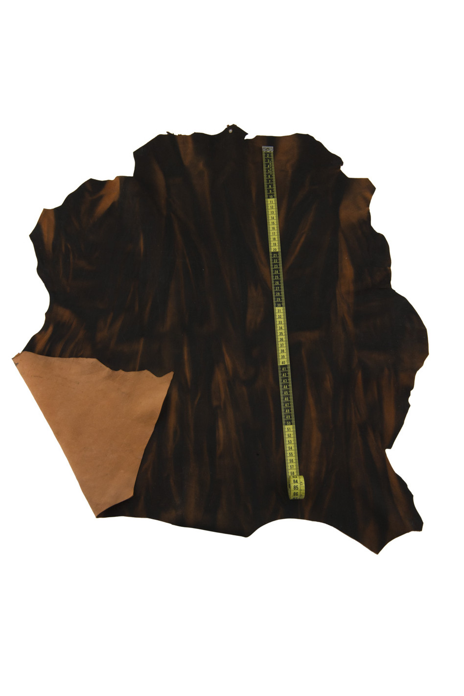 Original black and brown wrinkled goat suede with tye dye effect, soft and vintage.