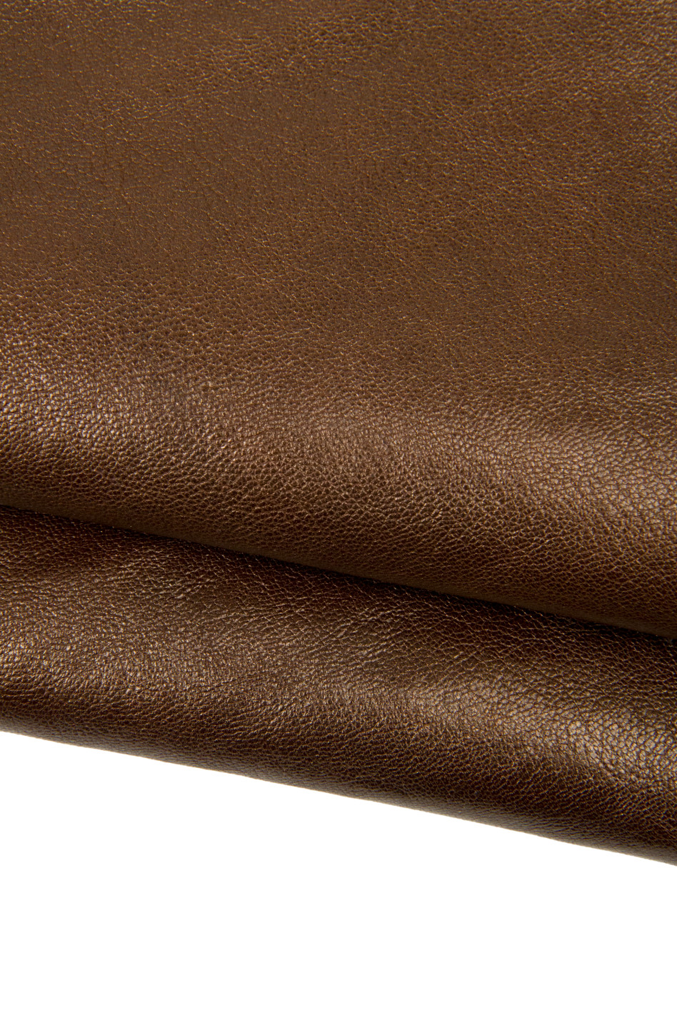 Brown PEARLIZED sporty leather skin, WRINKLED soft goatskin, glossy hide for crafters