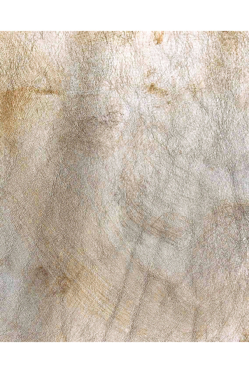 Fabulous vintage effect cowhide with light and dark, aged metallic effect.