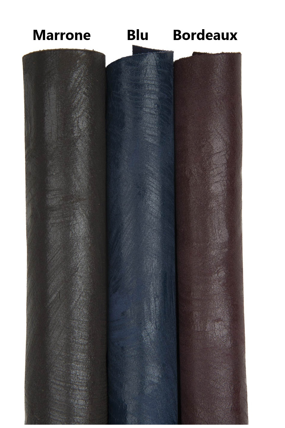Burgundy, blue, brown CRACKLED leather, VINTAGE aged suede cowhide, soft semi glossy calfskin