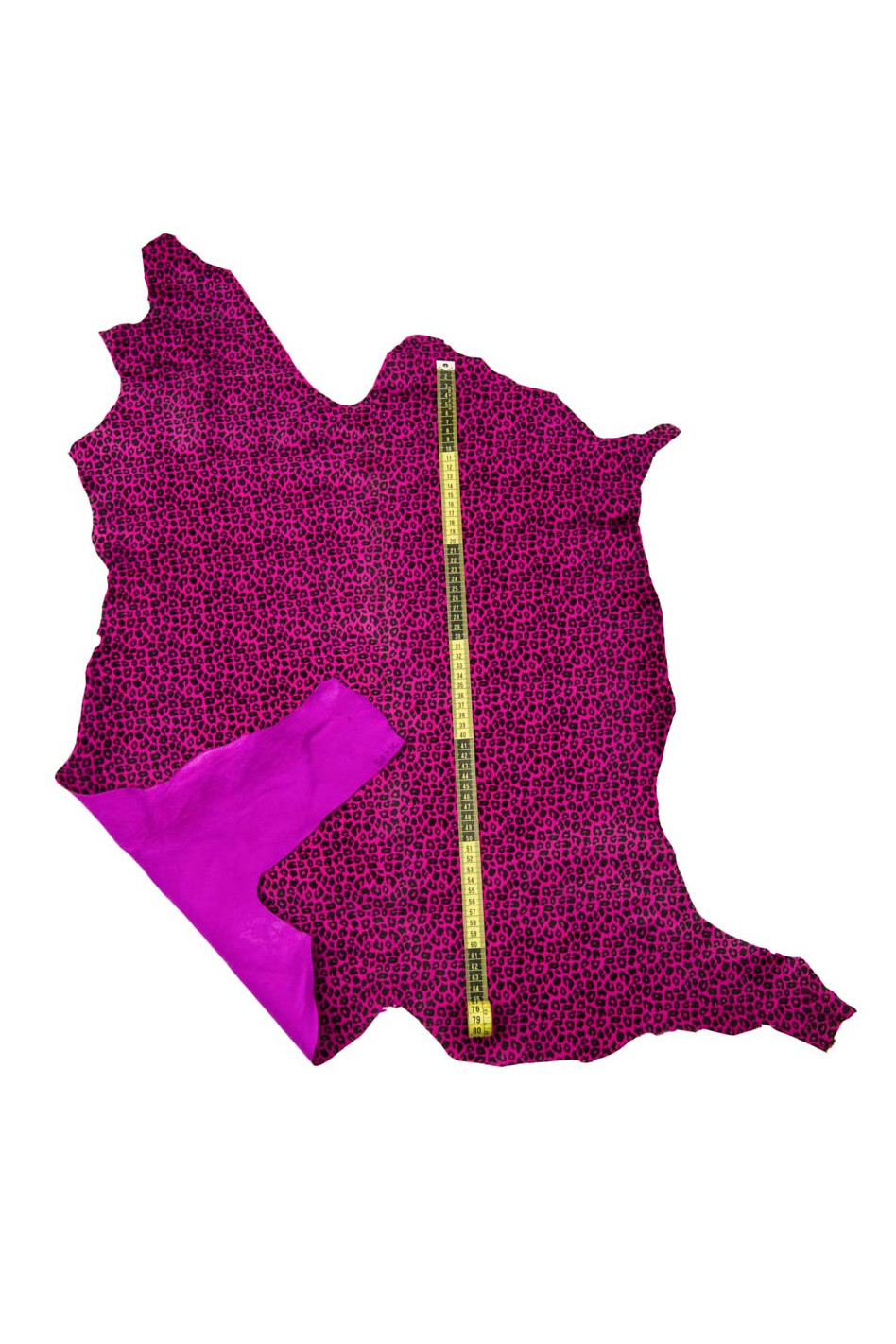 Outstanding leopard printed hair on leather hide, fuchsia - black cheetah textured pony calfskin, cowhide for crafting.