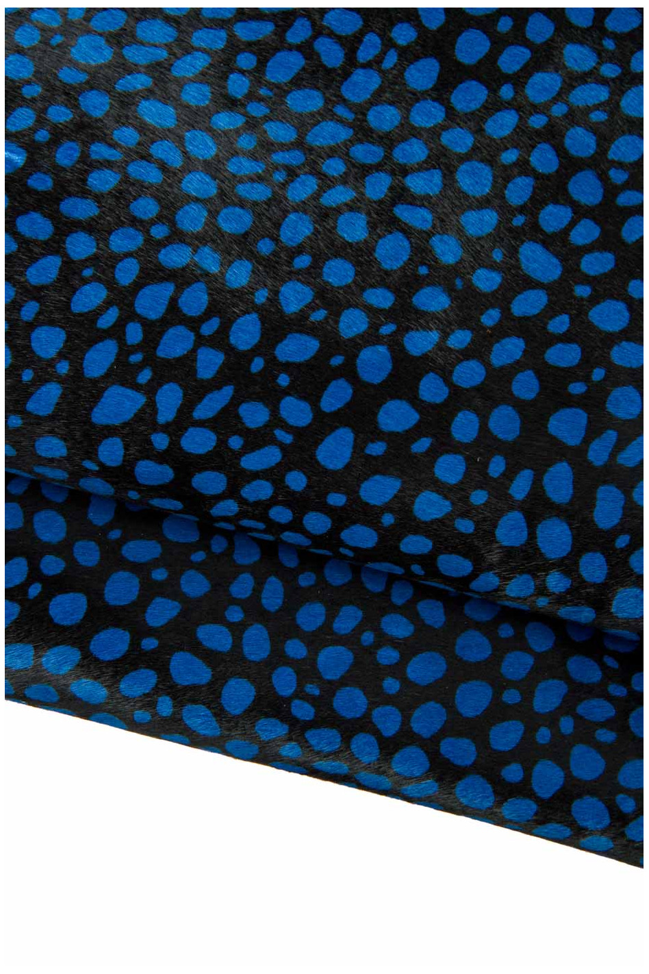 Wonderful animal printed pony calfskin, blue - black leopard textured hair on leather hide, cheetah pattern on cowhide. Ideal for DIY projects.