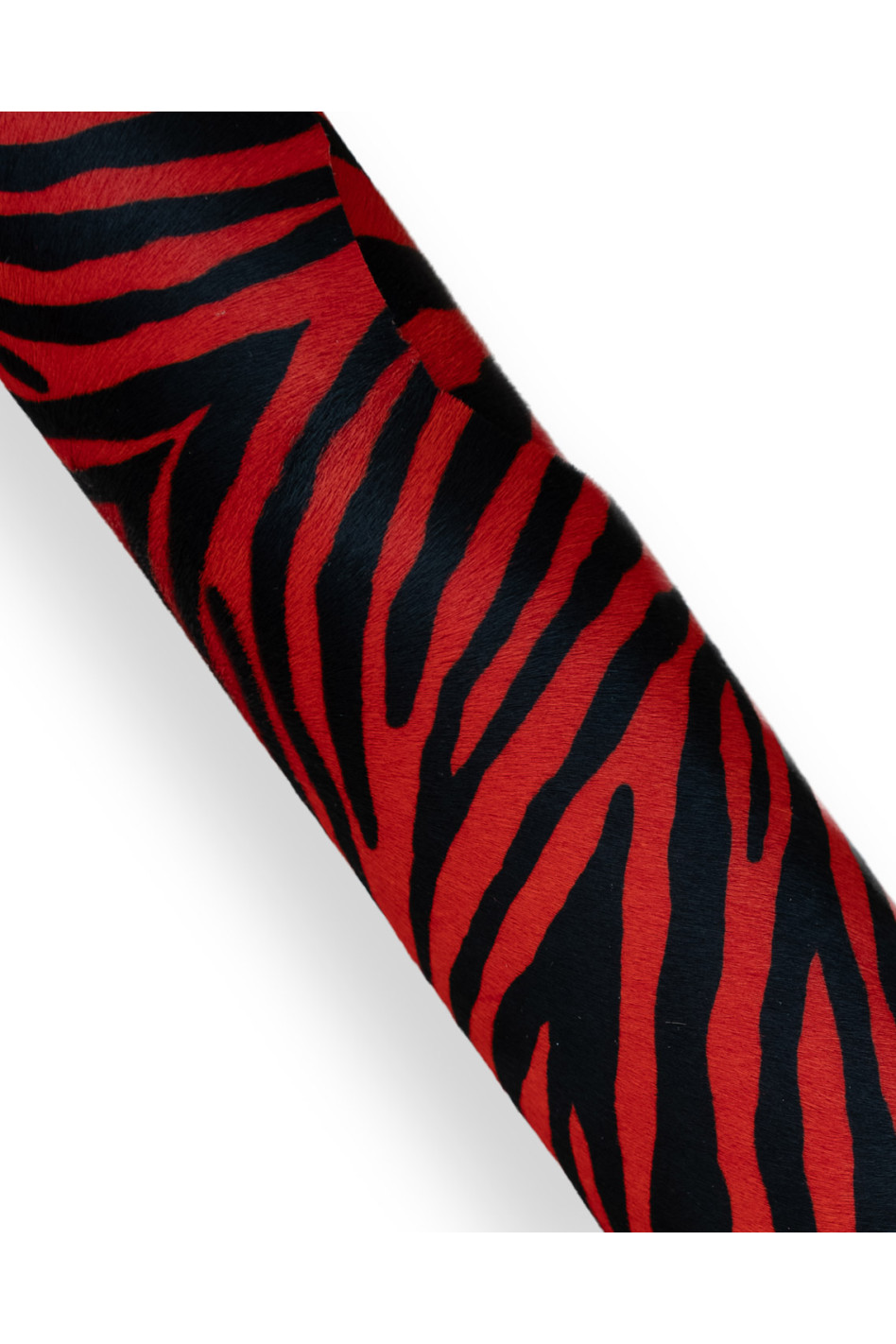 ZEBRA textured hair on leather hide, red and black animal print on hairy cowhide, elegant PONY leather for crafting