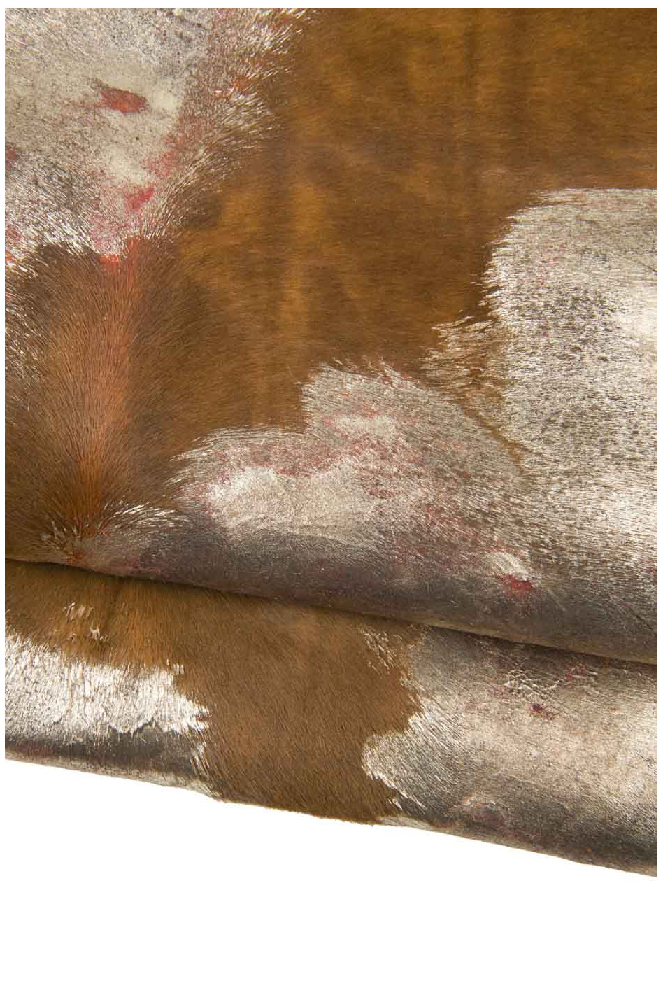 Brown hair on leather hide with light gold METALLIC spots, SPOTTED pony calfskin, selected Italian cowhide