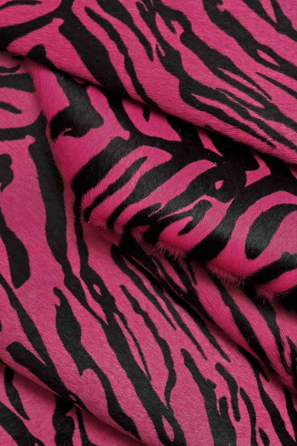 Italian leather, fuchsia base hairy calf with black zebra print, very deep colours, soft hand, sporty look
