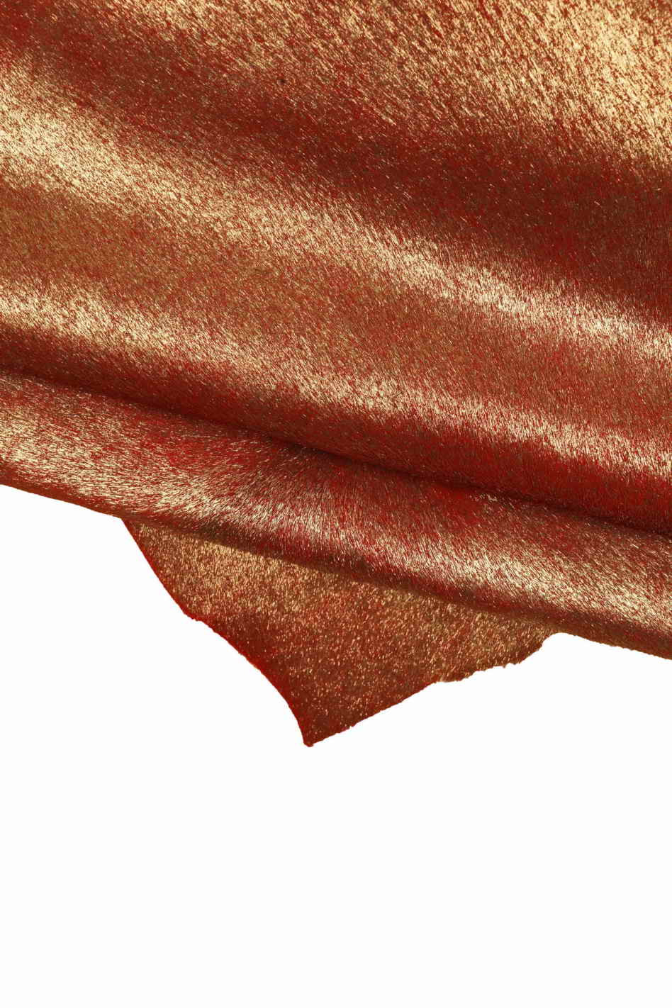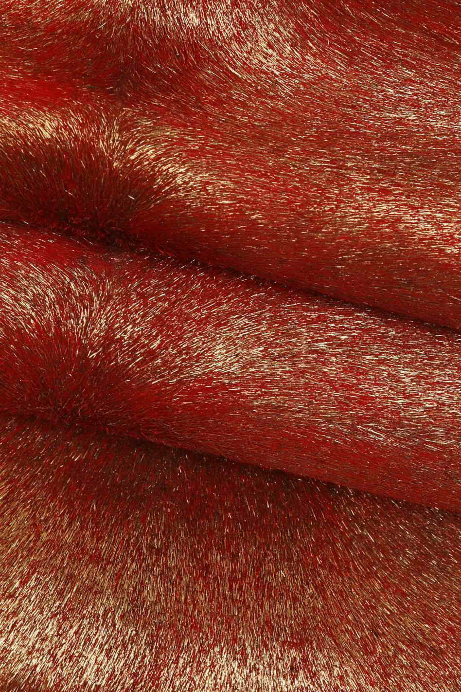 Red METALLIC hair on leather hide, soft pony calfskin with light gold foil