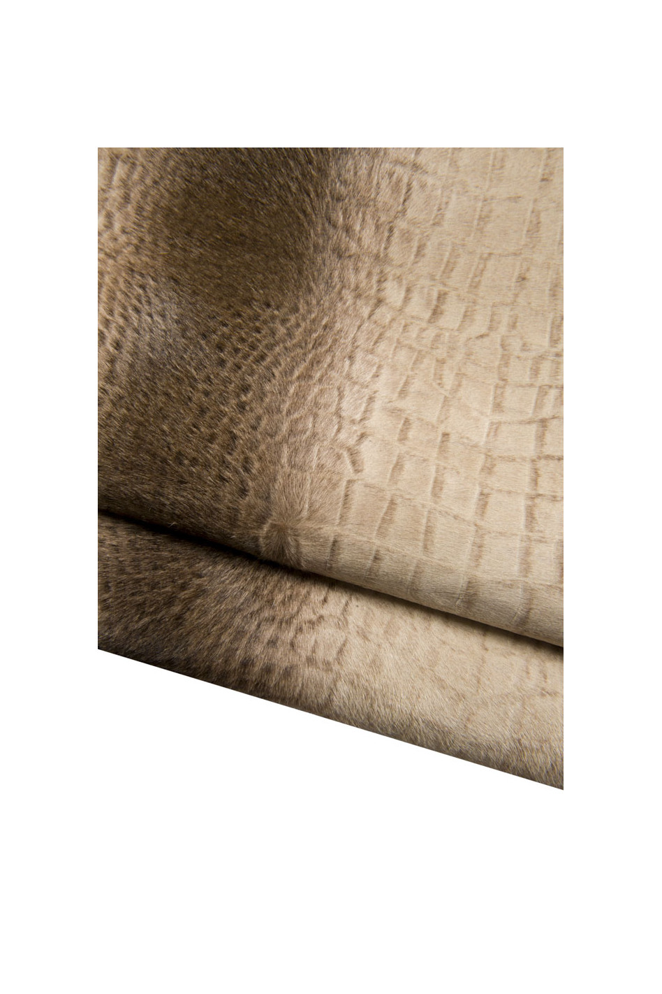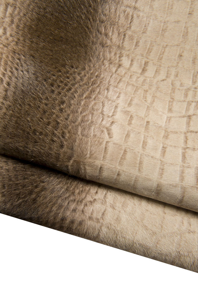 Beautiful pony skin on brown and creamstriped calfskin with crocodile print, ideal for crafts.