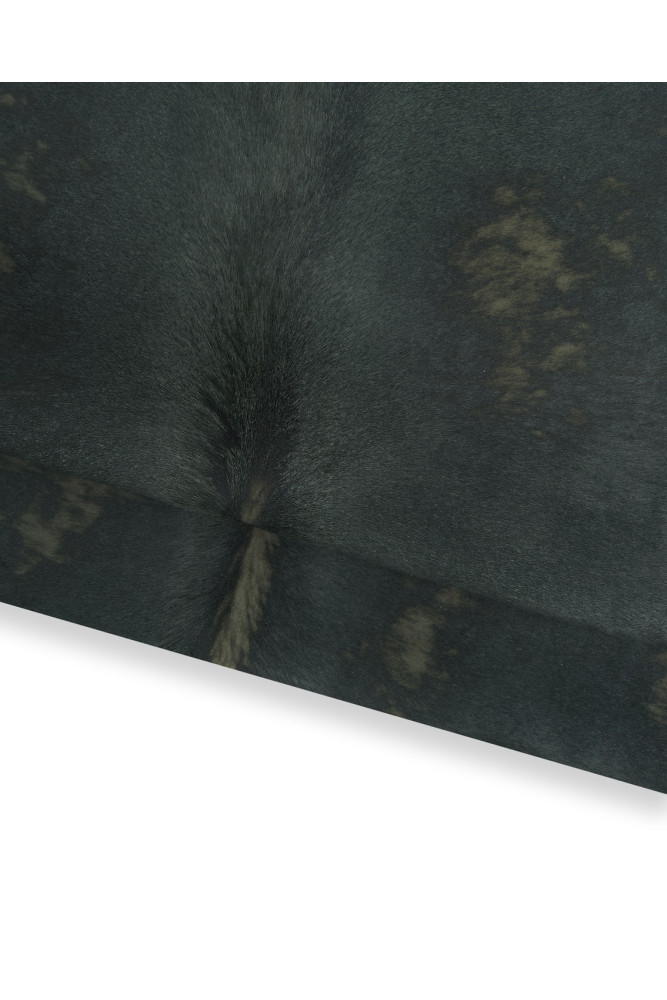 Dark green HAIR ON leather hide, VINTAGE distressed pony calfskin, aged soft cowhide