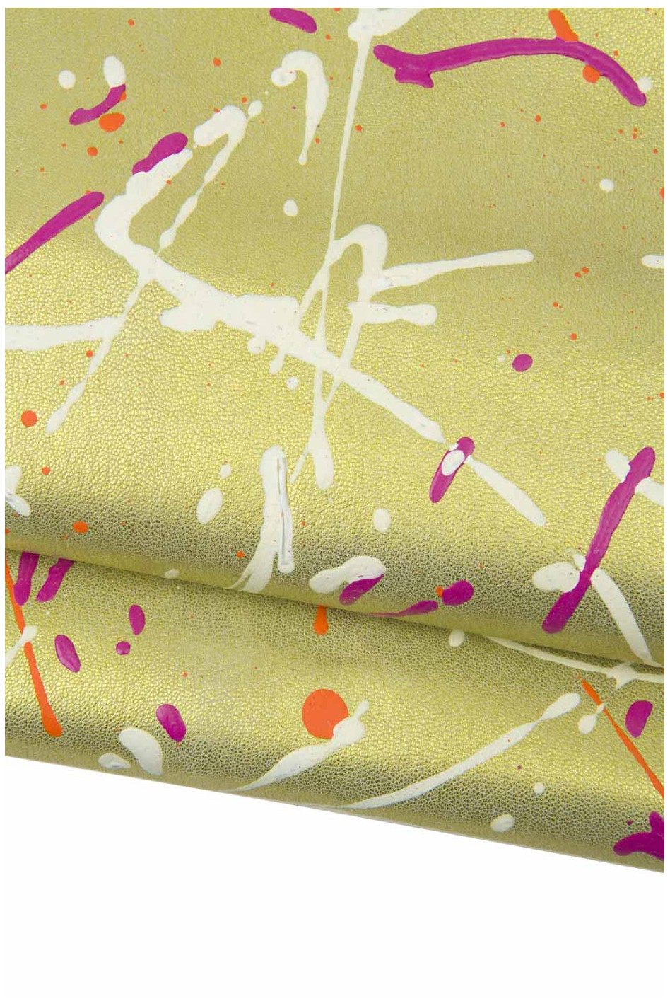 Unique multicolor splash print on gold goatskin, golden leather skin - pollock pattern, soft bright hand painted skin, for hobbyistst