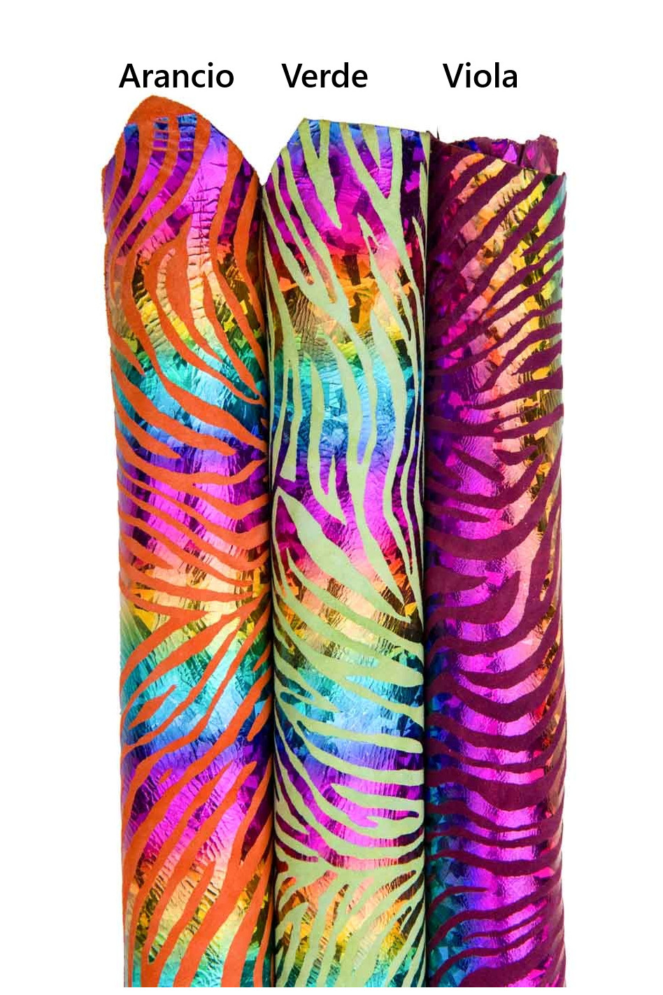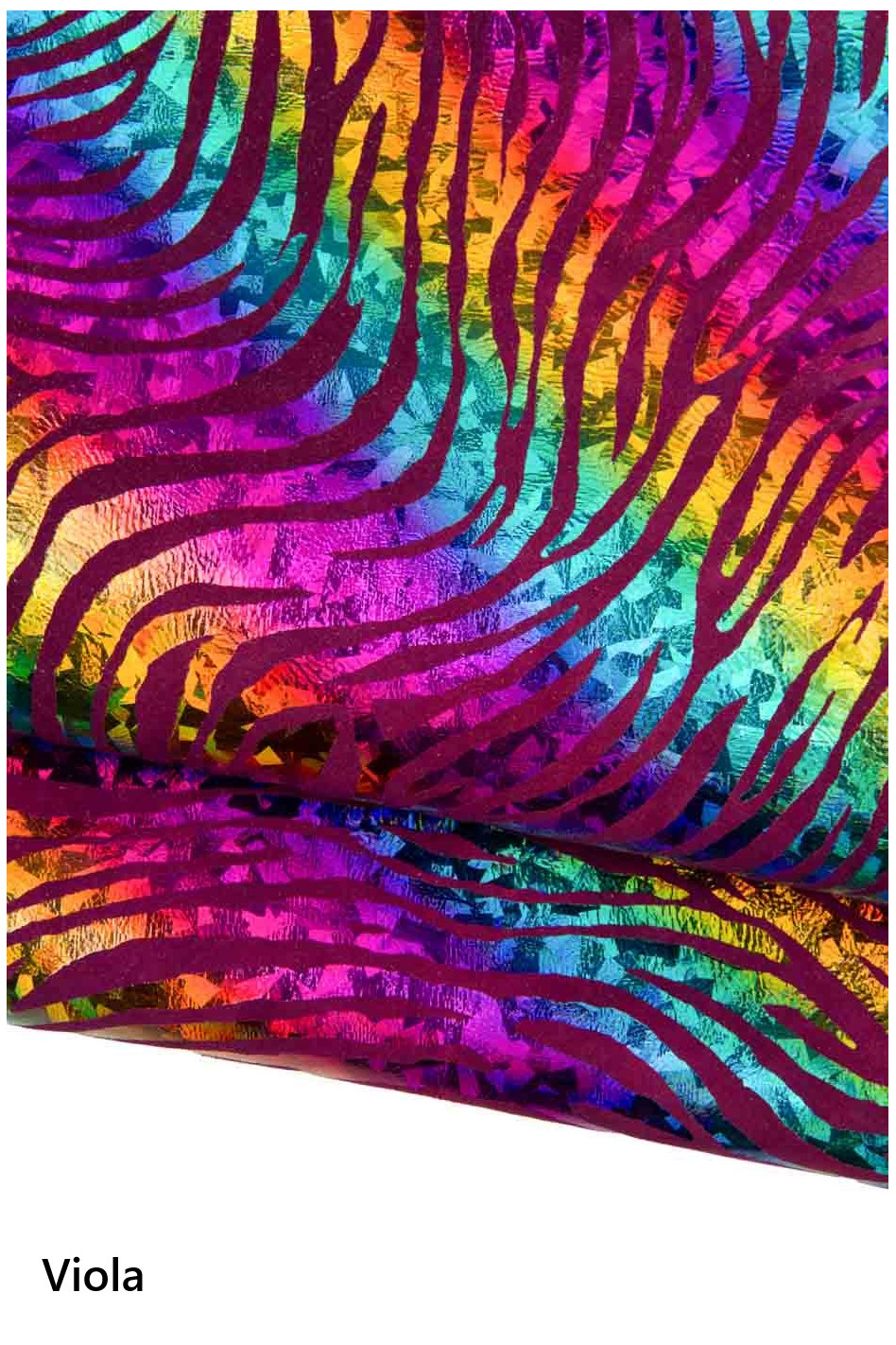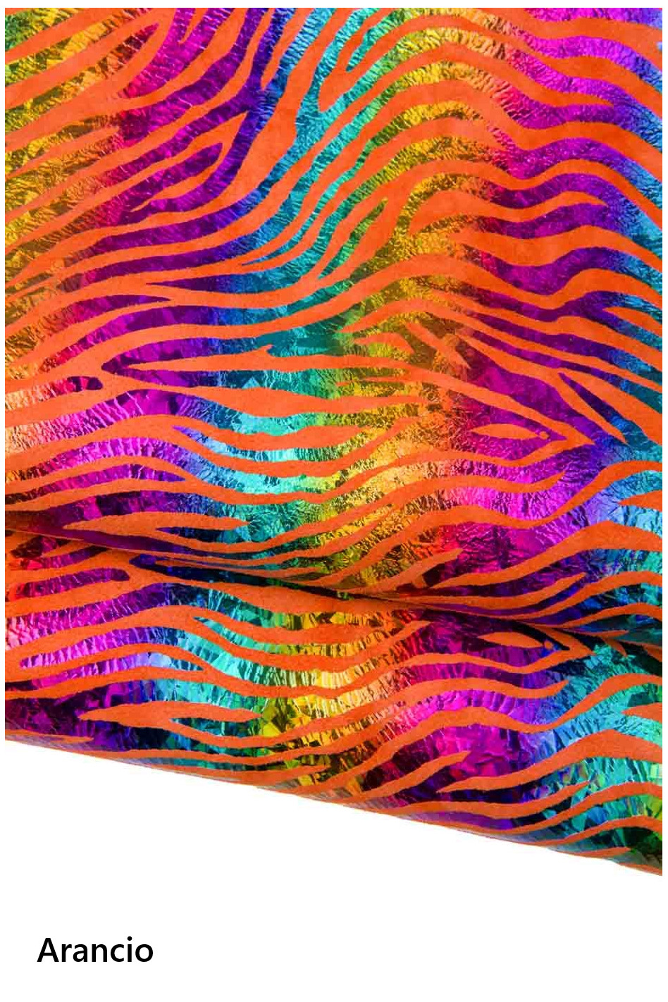 Stunning multicolor zebra textured leather skin, iridescent holographic goatskin, colorful animal printed suede skin, for hobbyists. Available in 3 base colors: arancio, verde, viola