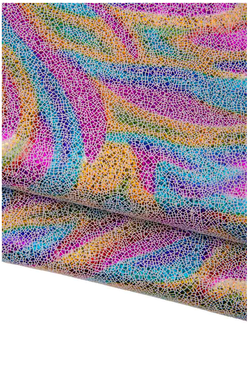 Fabulous iridescent laminated goatskin on lilac basis with crackle print, vibrant for DIY.