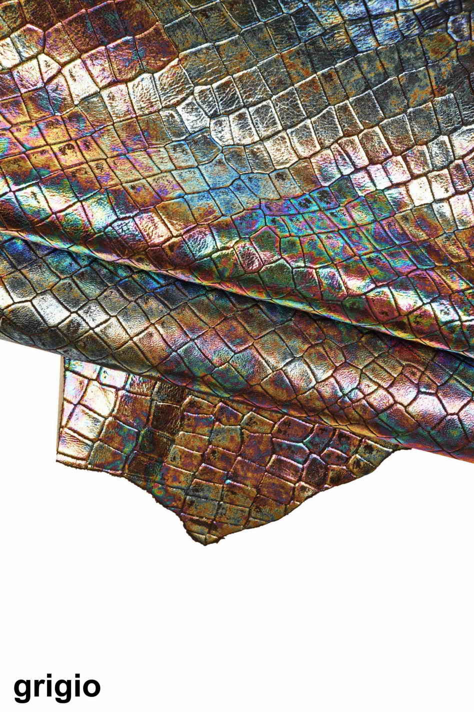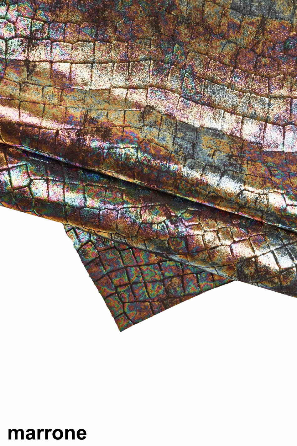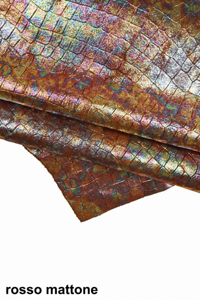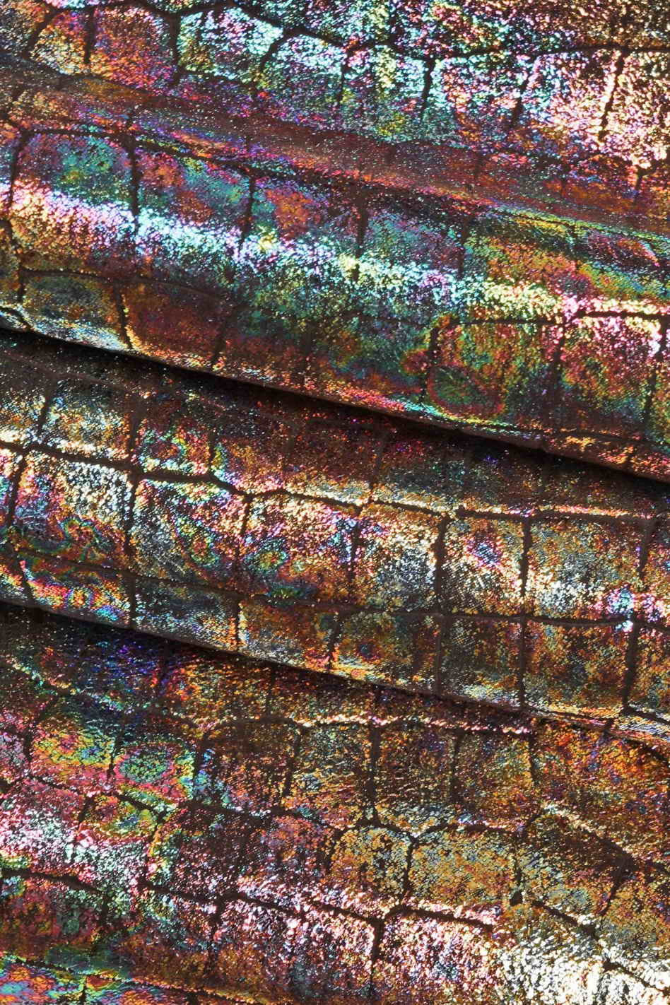 HOLOGRAPHIC MULTICOLOR goatskin, metallic crackle pattern metallic leather skin, soft...