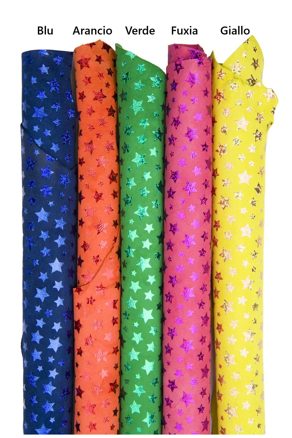 STAR printed leather skin, blue, orange, green, fuxia, yellow IRIDESCENT metallic suede goatskin