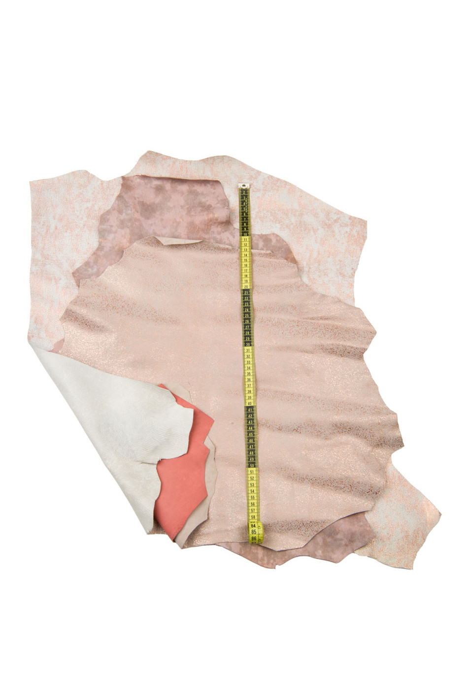 Bundle of 3 pink leather skins, assortment of metallic and printed goatskins, ideal for diy projects