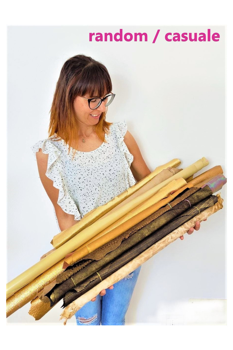 Full Leather skins GOLD, CREAM and BRONZE Random Assortment, mix of patterns and solid colors, Crafting Leather Bundles 3 skins