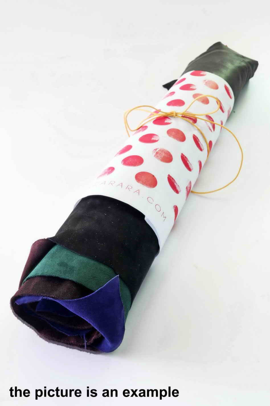 Bundles of suede leather pieces - big size cutouts - solid colors, various tones, winter dark colors. Sporty looking. Packs of 5 pieces or/and 8 pieces available. Cutouts of genuine Italian leather. The smallest approximate size is 16 x 16 inches.