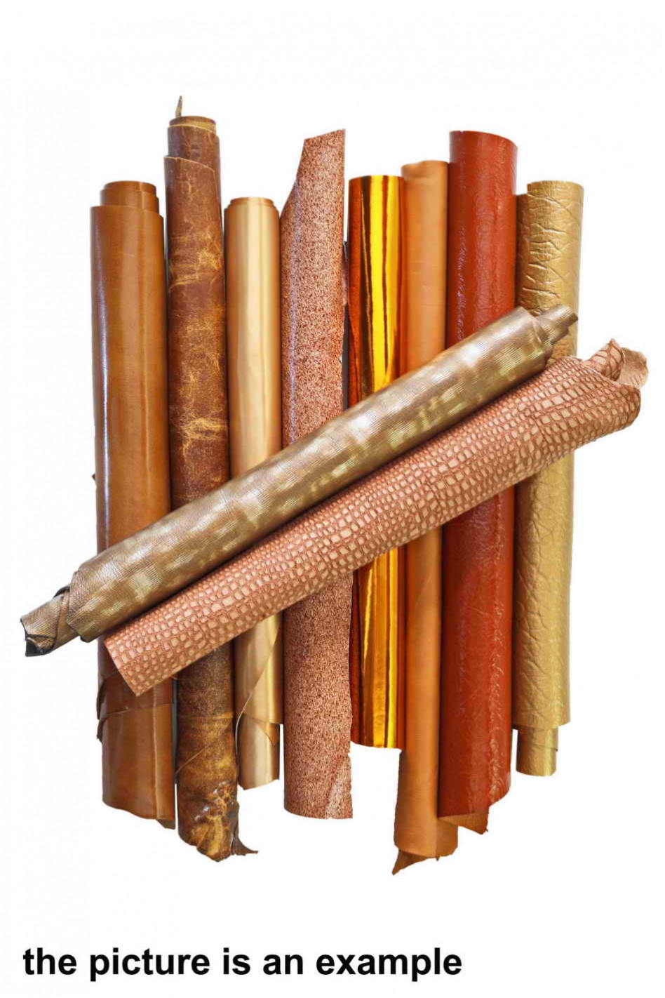 Mix leather scraps - BROWN, CAMEL, REDDISH tones - fancy textures, foils and softness various, 10 or 15 italian leather pieces
