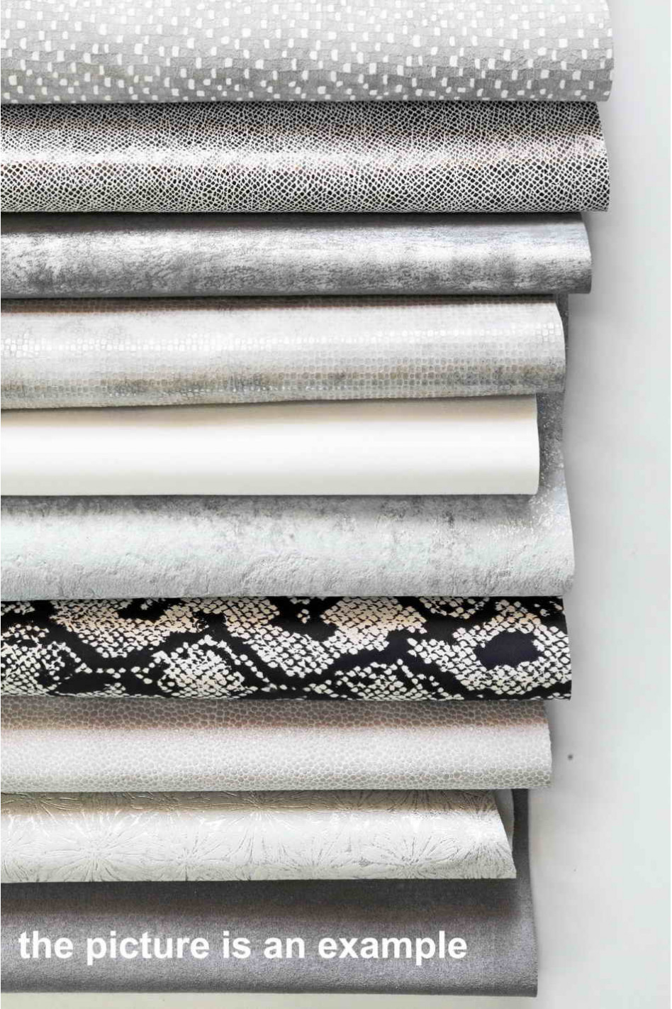 Gorgeous fancy leather scraps for lovers of white, grey and silver tones!
