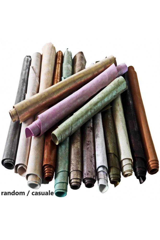 Leather scraps SUEDE with foil effect, metallic suede leather pcs, colors various, random assortment 10 italian leather pieces