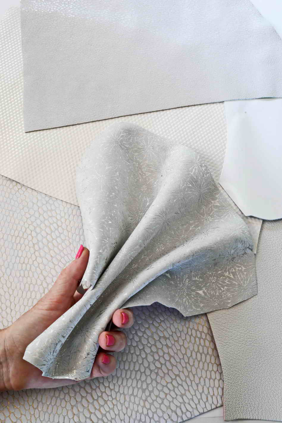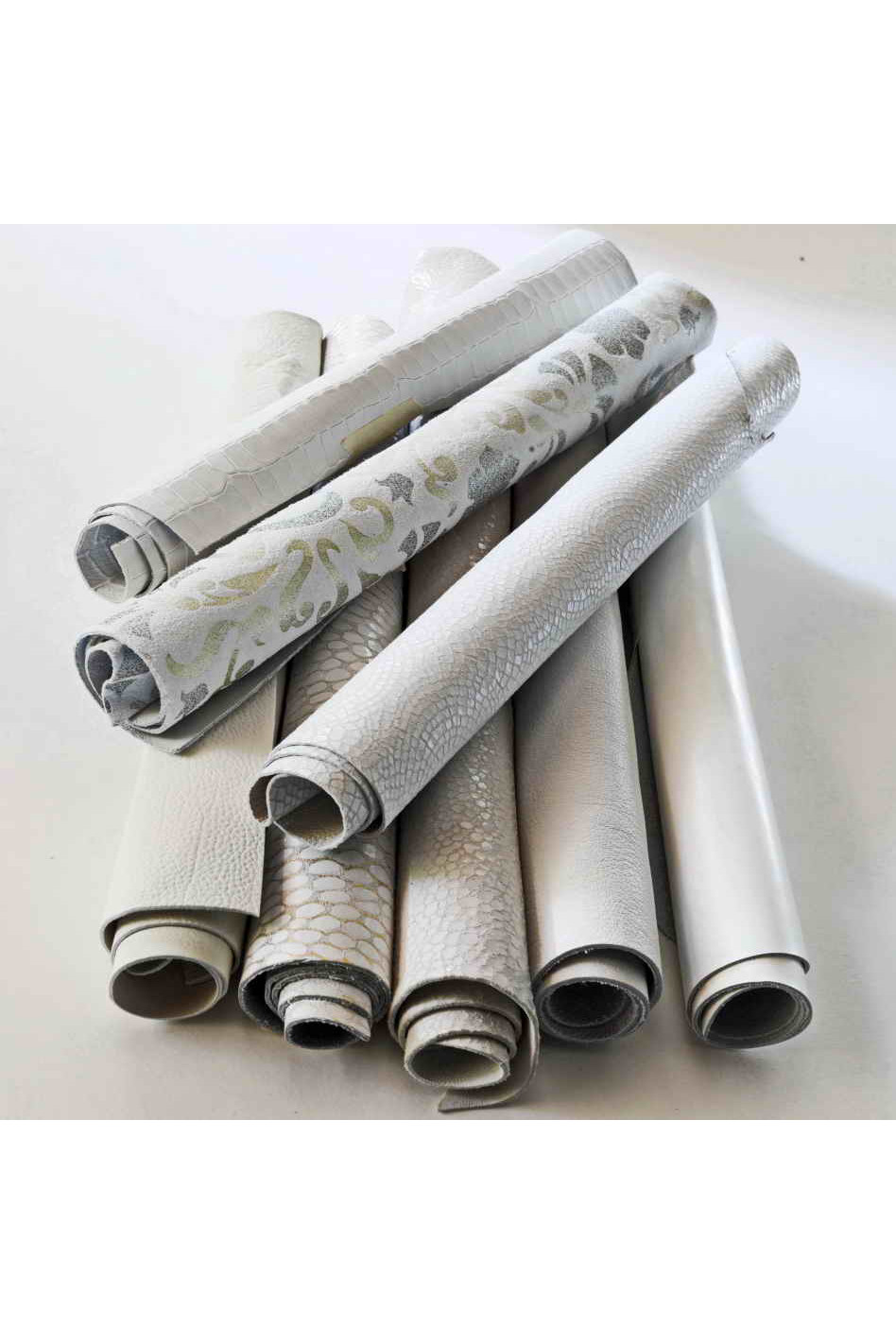 LEATHER scraps - WHITE color - fancy textures, solid color and softness various, italian leather pieces 1 lbs