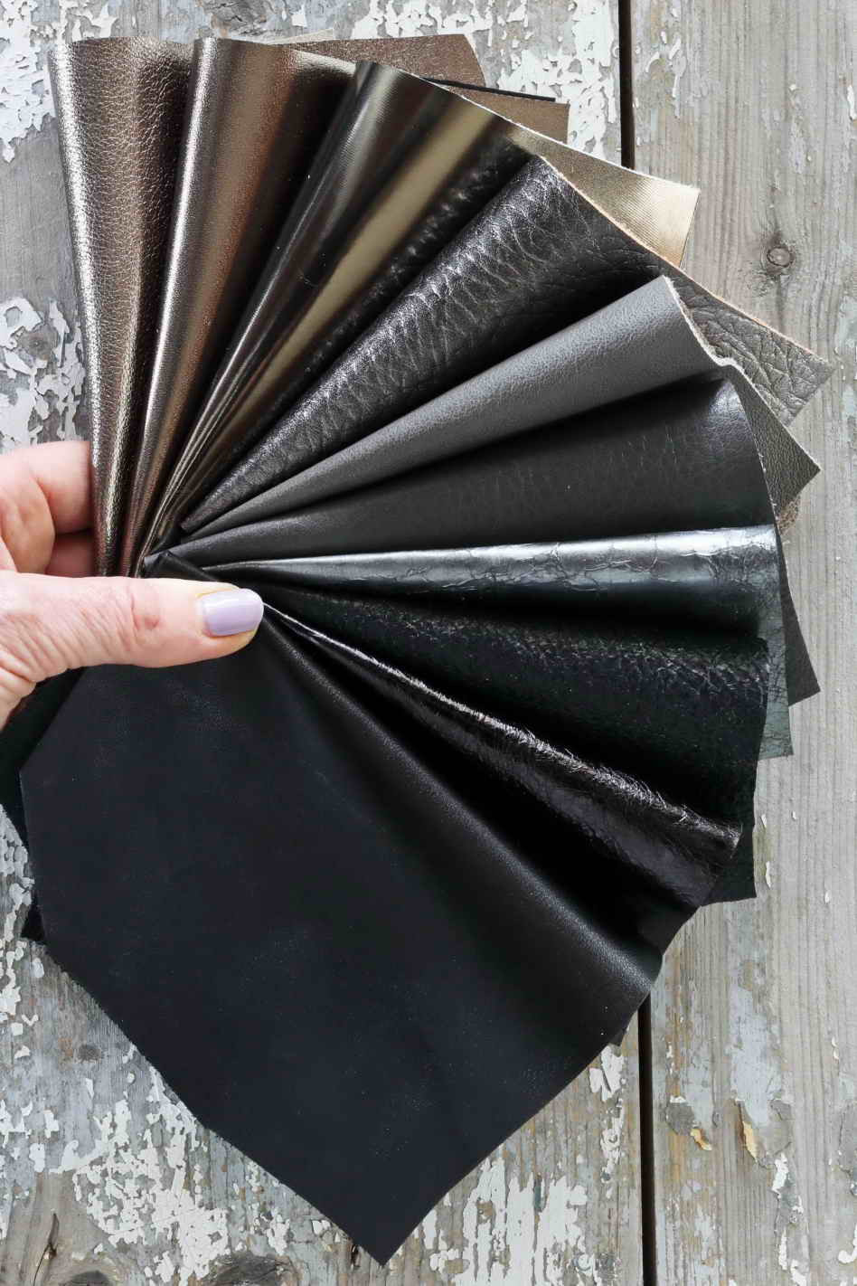 Gorgeous fancy leather scraps for lovers of grey, black and steel tones!