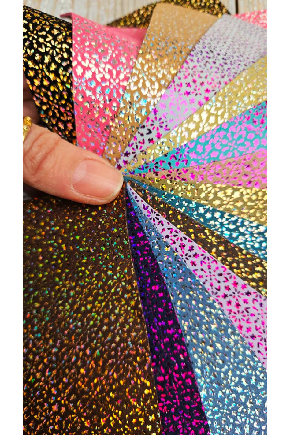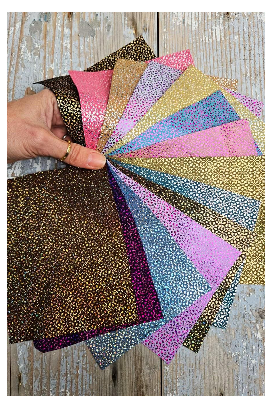 Gorgeous fancy leather scraps for lovers of multicolor glittery prints!