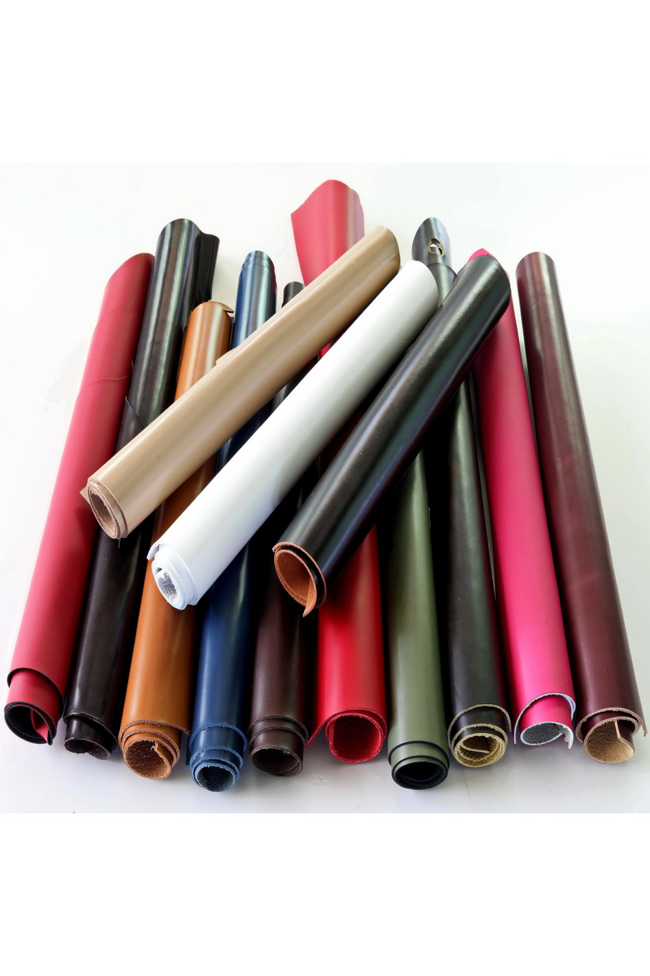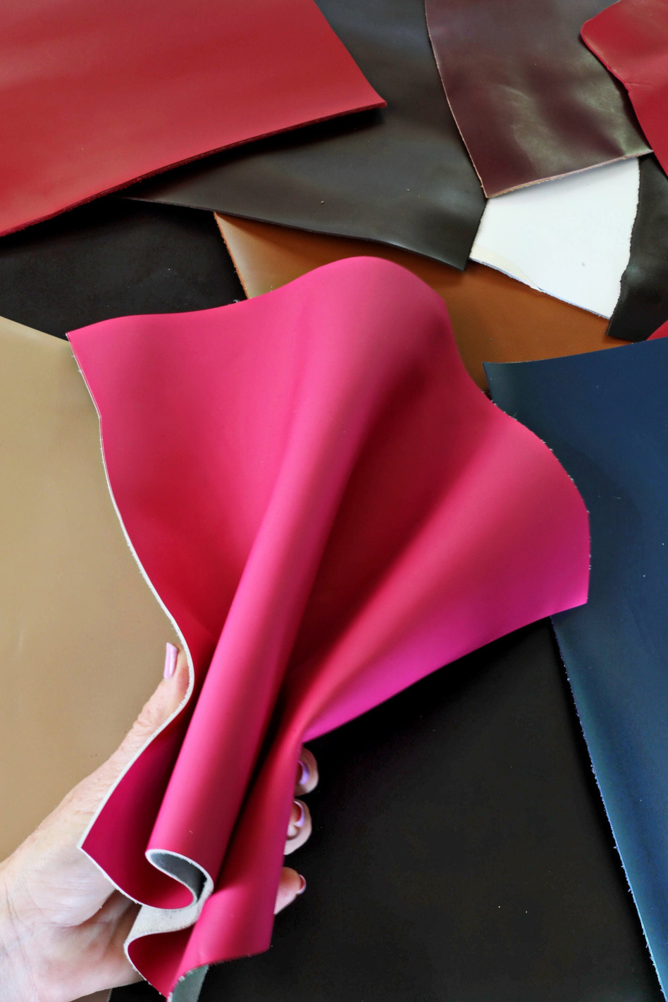 Leather pieces BRUSH OFF abrasivato solid colors random assortment calf thickness 1.0-1.5mm(3-4oz) 1kg(2lbs) - 2kg(4lbs)