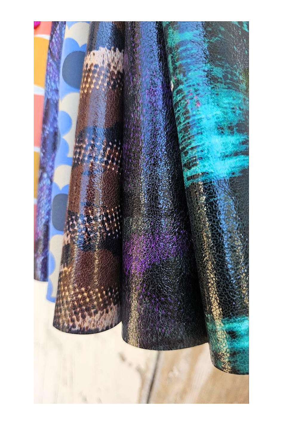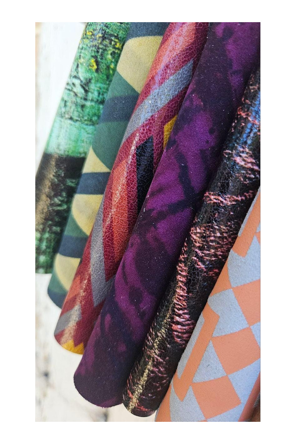 10 Colorful Printed Leather Scraps RANDOM selection, GEOMETRIC and ABSTRACT leather scraps 6x5" / 15x12 cm and 10x8" / 20x25 cm
