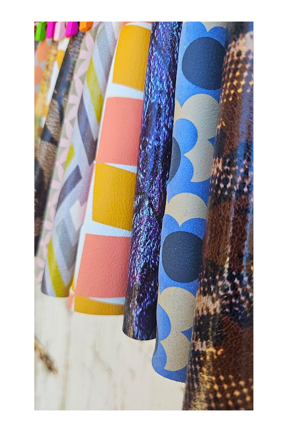 Gorgeous fancy leather scraps for lovers of multicolor geometric and abstract textures!