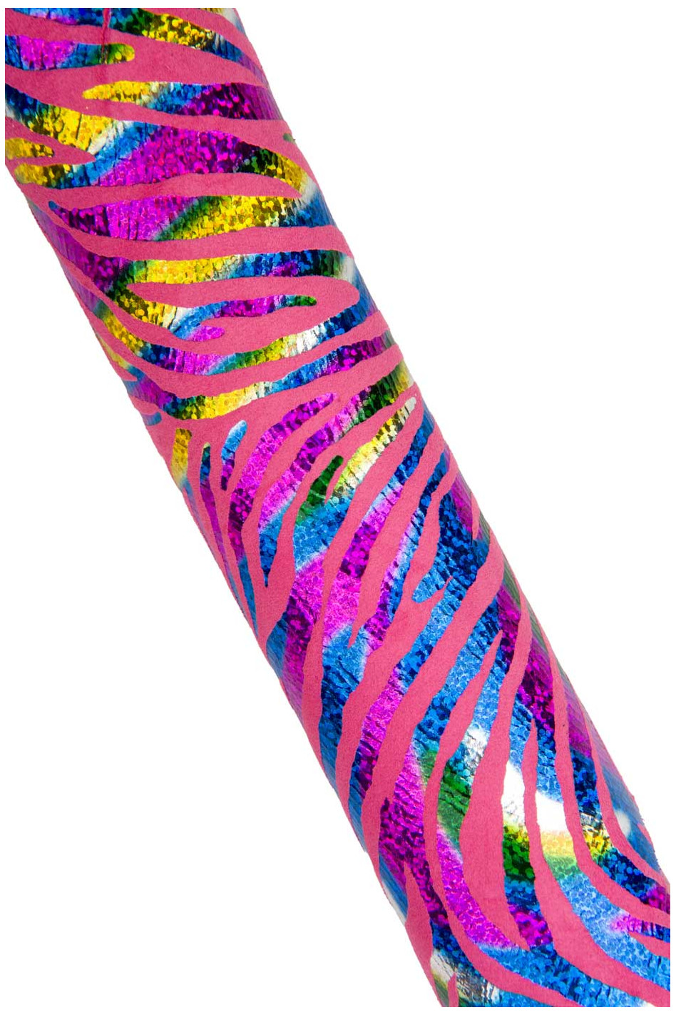 Stunning multicolor holographic metallic zebra printed on pink suede goatskin, bright and soft.