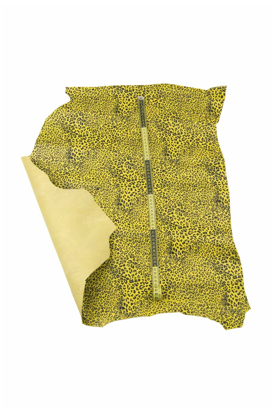 Yellow black LEOPARD printed leather skin, animal print on goatskin, CHEETAH textured hide for hobbyists