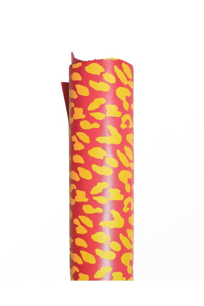Bright COLORED leopard textured goatskin, yellow CHEETAH pattern on red leather hide, animal textured skin for hobbyists
