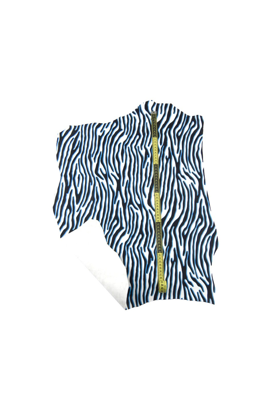 Gorgeous white nappa leather with black and blue zebra animal print, soft, for hobbyists.