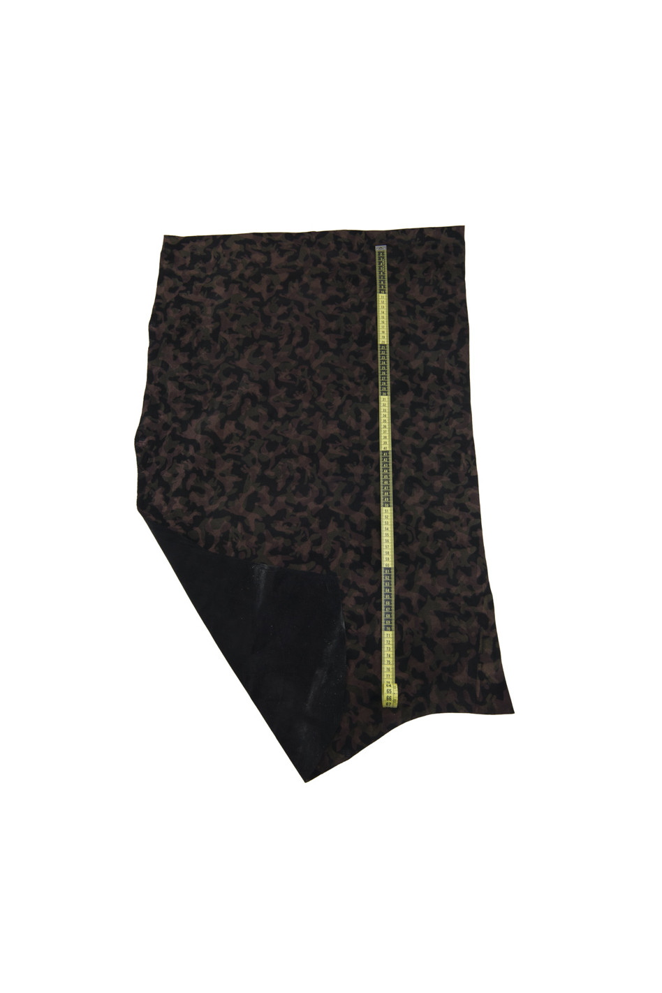 CAMOUFLAGE textured leather hide, bronze brown military print on suede calfskin