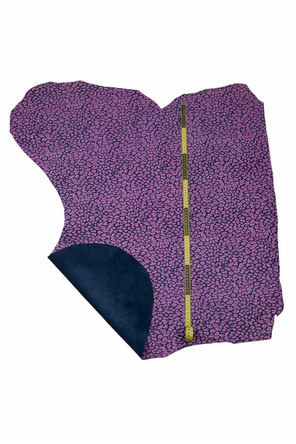 Pink LEOPARD texture on blue suede calfskin, animal cheetah printed split cowhide