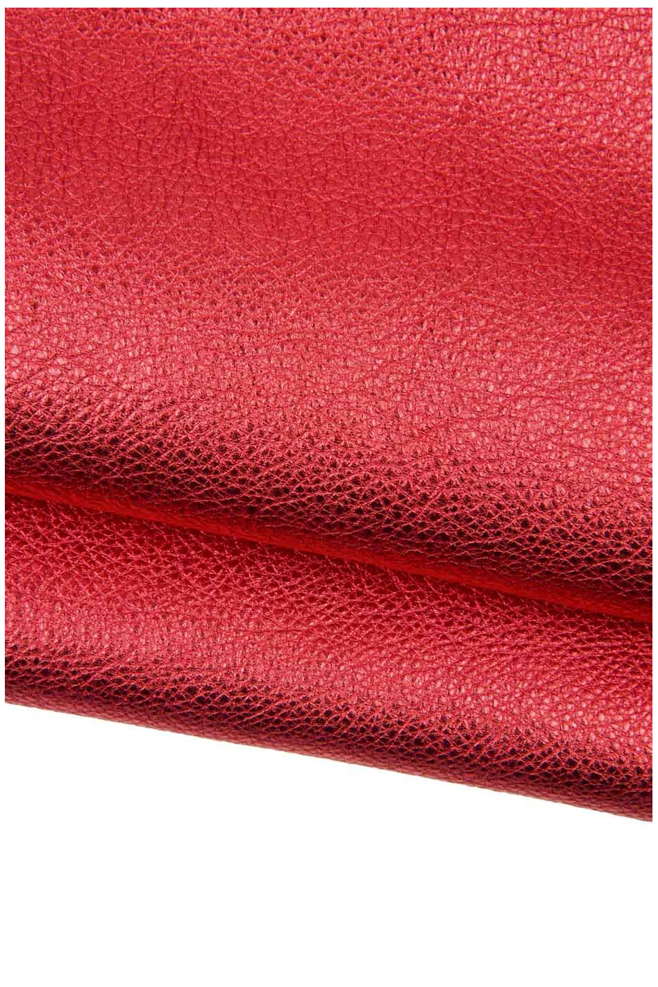 Red METALLIC leather hide, GRAINY soft cowhide, bright calfskin for crafting 1.3 - 1.5 mm