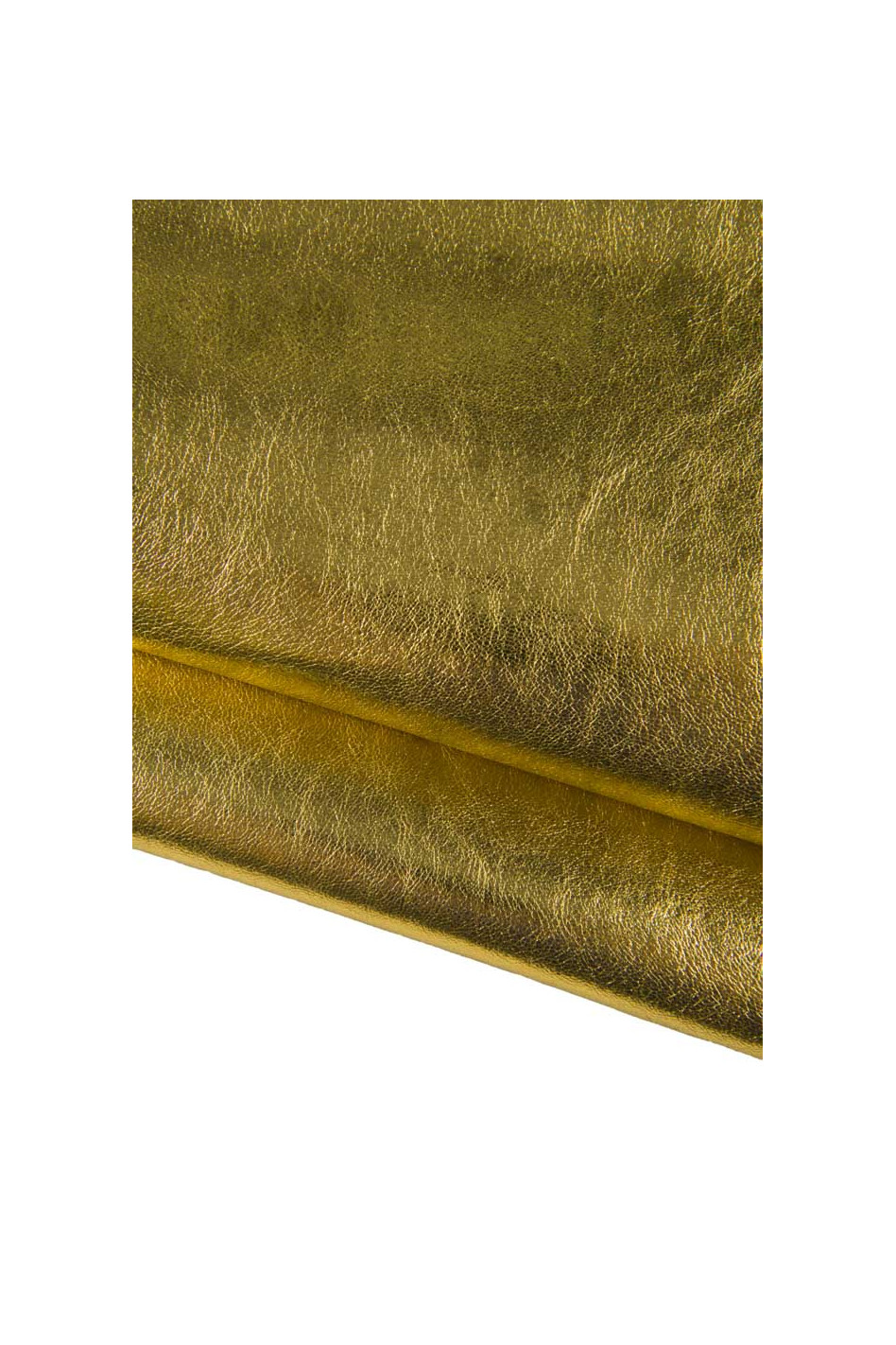Particular double-face leather, gold laminate and military green suede, ideal for crafts.
