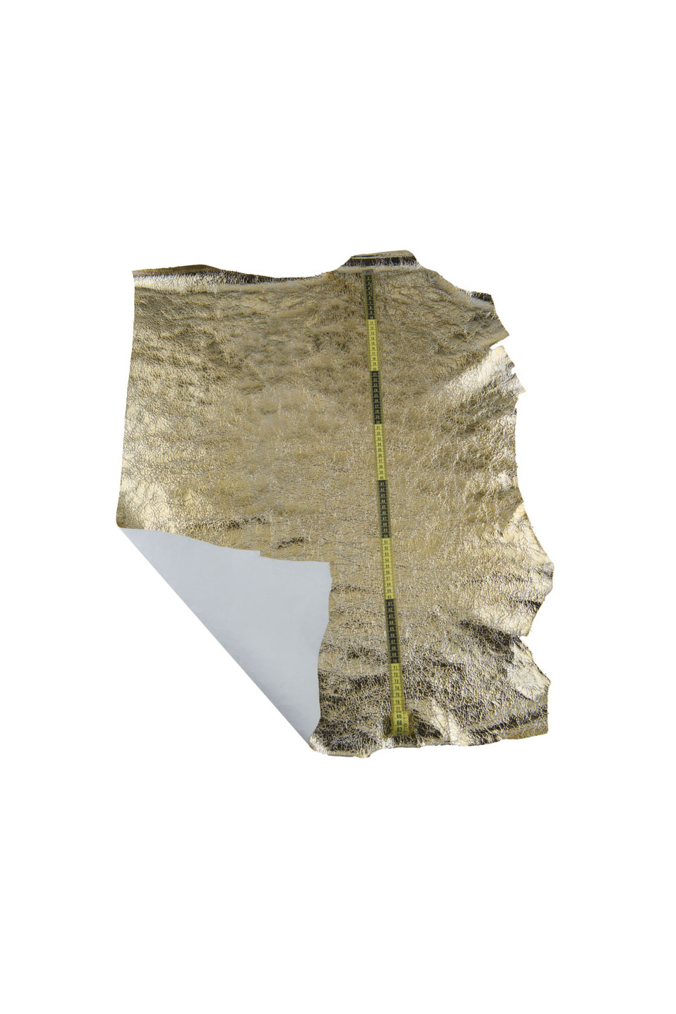 Gold CRACKLE printed leather skin, soft metallic goatskin, golden hide for crafting