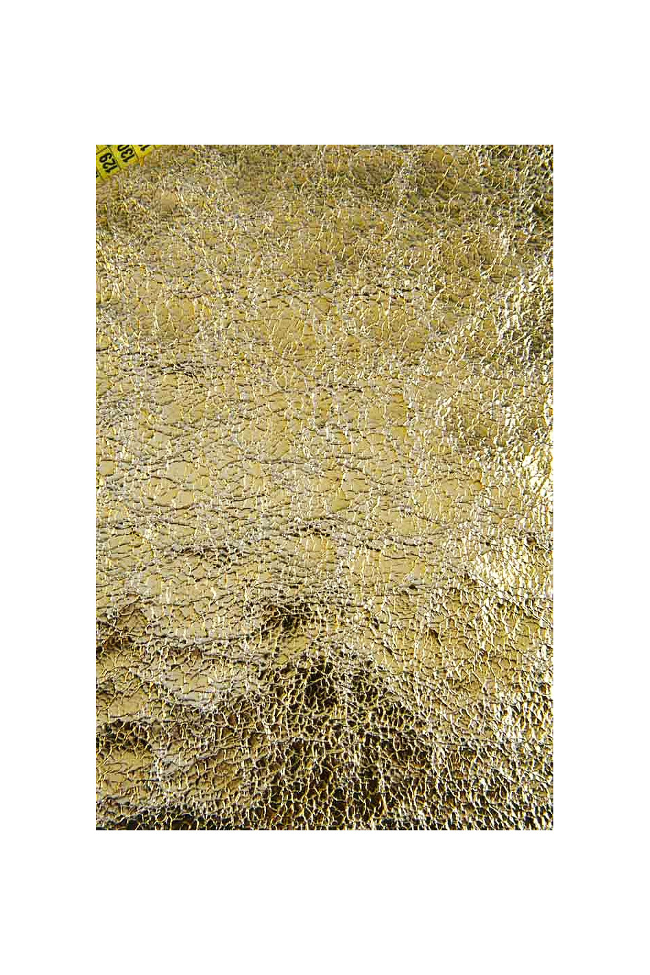 Bright gold laminated goatskin with crackle print, soft, ideal for crafts.