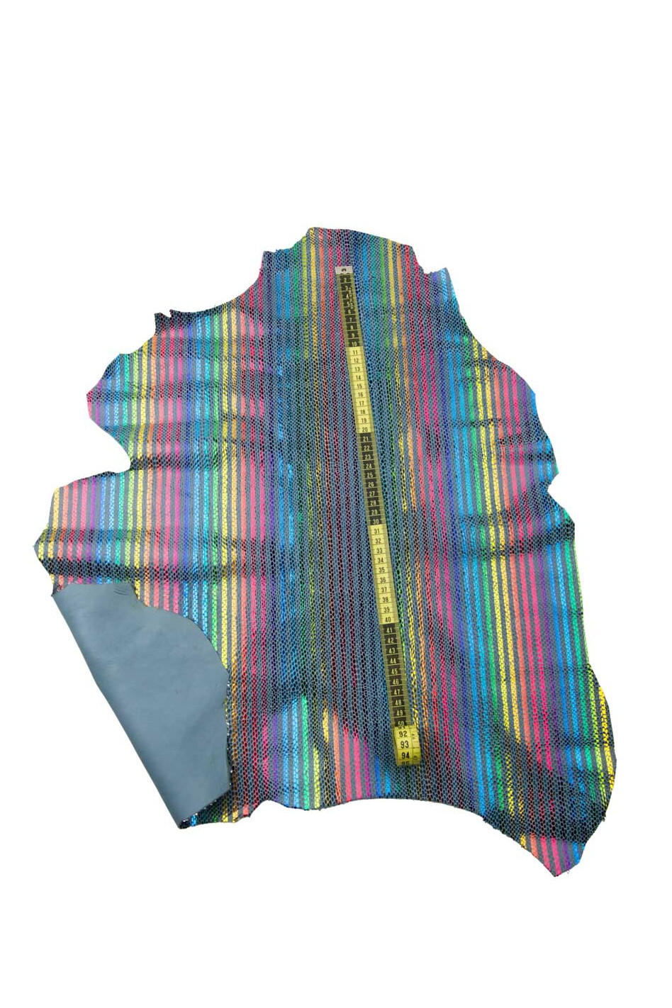 Multicolor STRIPED printed leather skin, dark grey snake textured on purple goatskin, RAINBOW textured hide