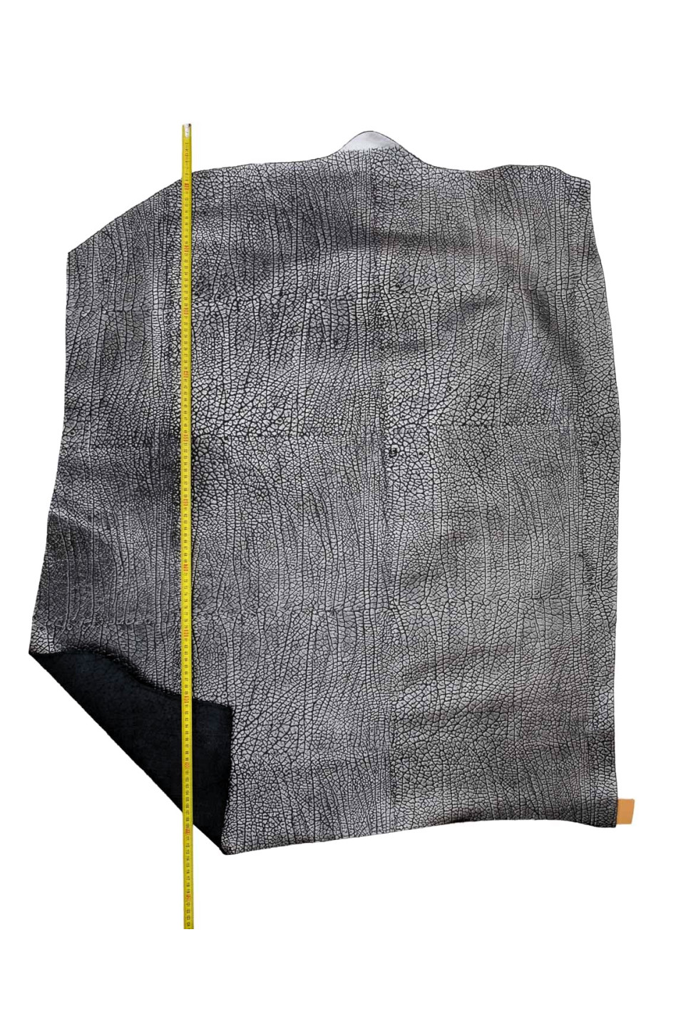 Black silver ELEPHANT textured leather skin, metallic calfskin animal print 1.2 - 1.4 mm